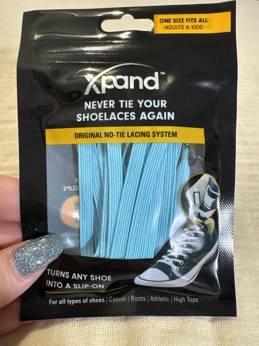 Xpand Lacing System works on all types of shoes - from kids shoes, adults sneakers, Timberlands to high-top boots.